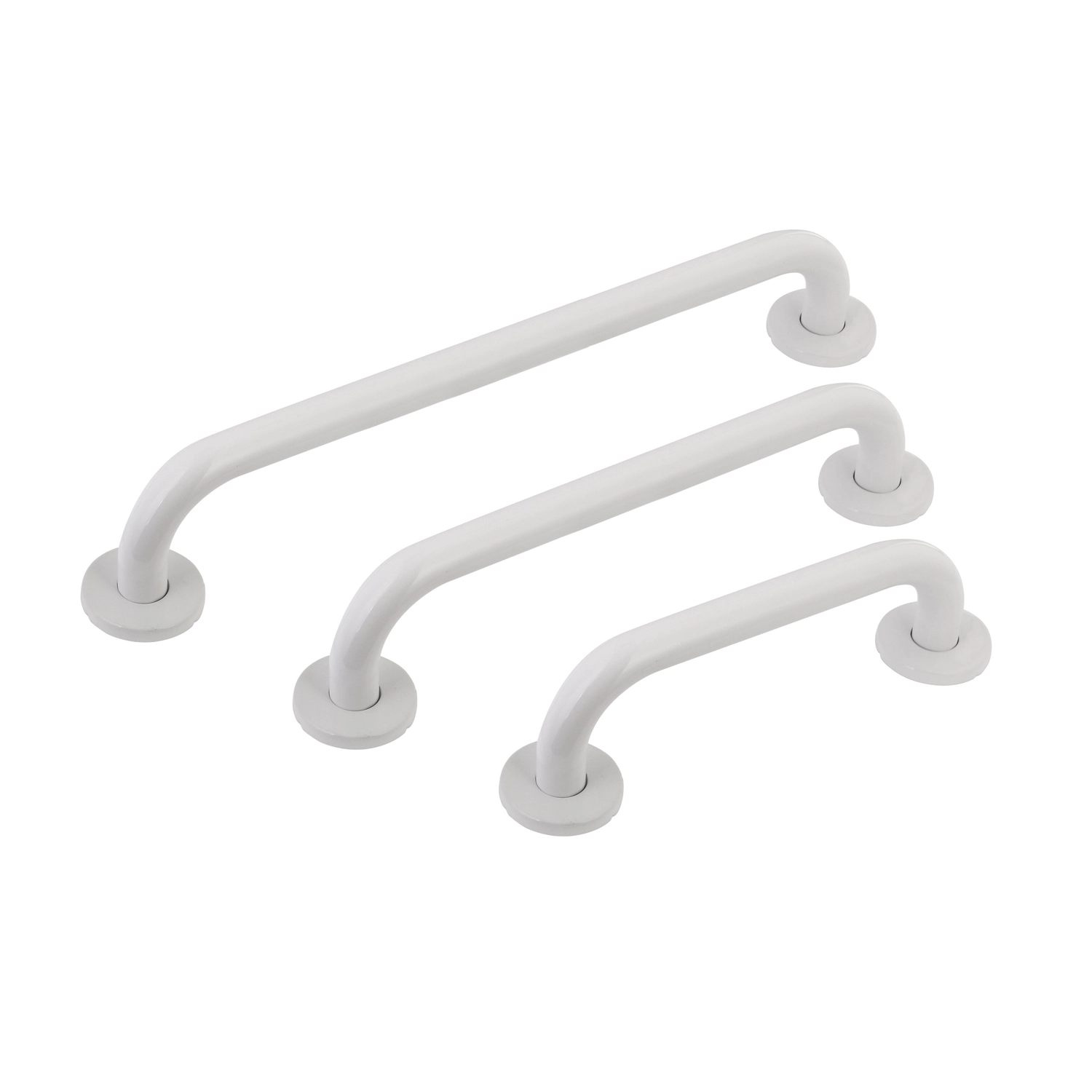 straight grab bar from HOTEC, steel with white epoxy finish, 1.2mm thick, durability and safety, gives support and balance to those with limited mobility or who have trouble standing up.Suitable for use in bathrooms, WC and showers.