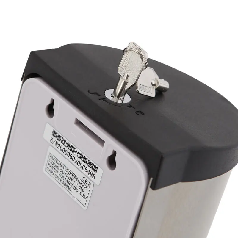 Liquid soap dispenser from HOTEC is 304 stainless steel, security lock with standard key to prevent stealing. Transparent plastic content viewer on the front. suitable for high traffic location.