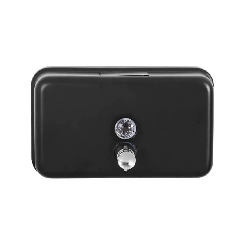 Horizontal Square Liquid Soap Dispenser is 304 stainless steel with chromed-plated ABS thermoplastic valve. Long lasting strength, security lock with standard key to prevent stealing. 1000ml capacity, suitable for high traffic location.