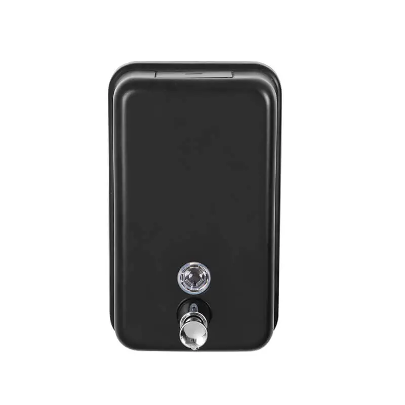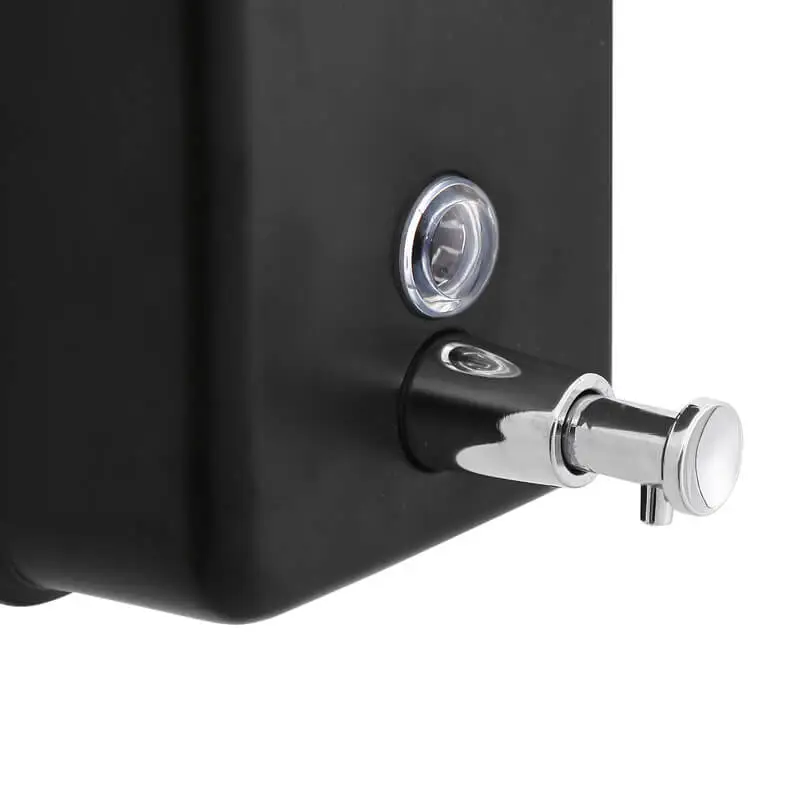Vertical Square Liquid Soap Dispenser is 304 stainless steel with chromed-plated ABS thermoplastic valve. Long lasting strength, security lock with standard key to prevent stealing. 1200ml capacity, suitable for high traffic location.