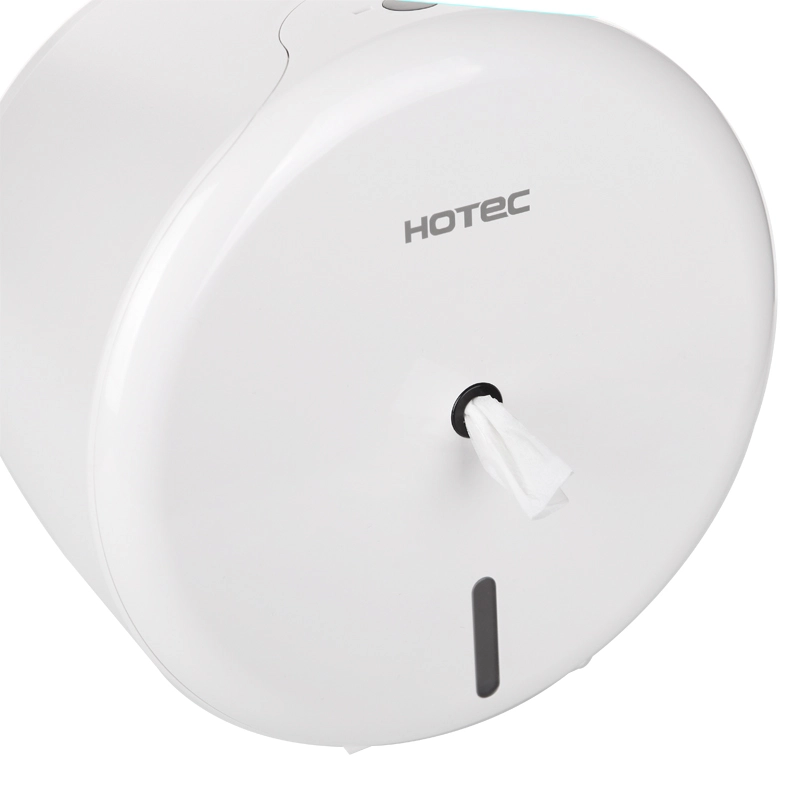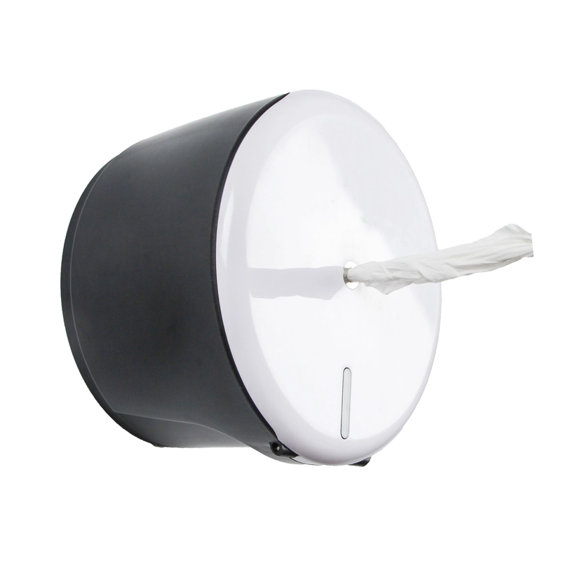 Wall mounted Central Pull Toilet Paper Dispenser. Super save paper design with ABS white or black color. Users only touch one sheet at a time. Save 40% paper. Always One-at-a-time dispensing, no break inside. Frontal inspection slot to indicate refill level. Suitable for public use with high strength and durability.