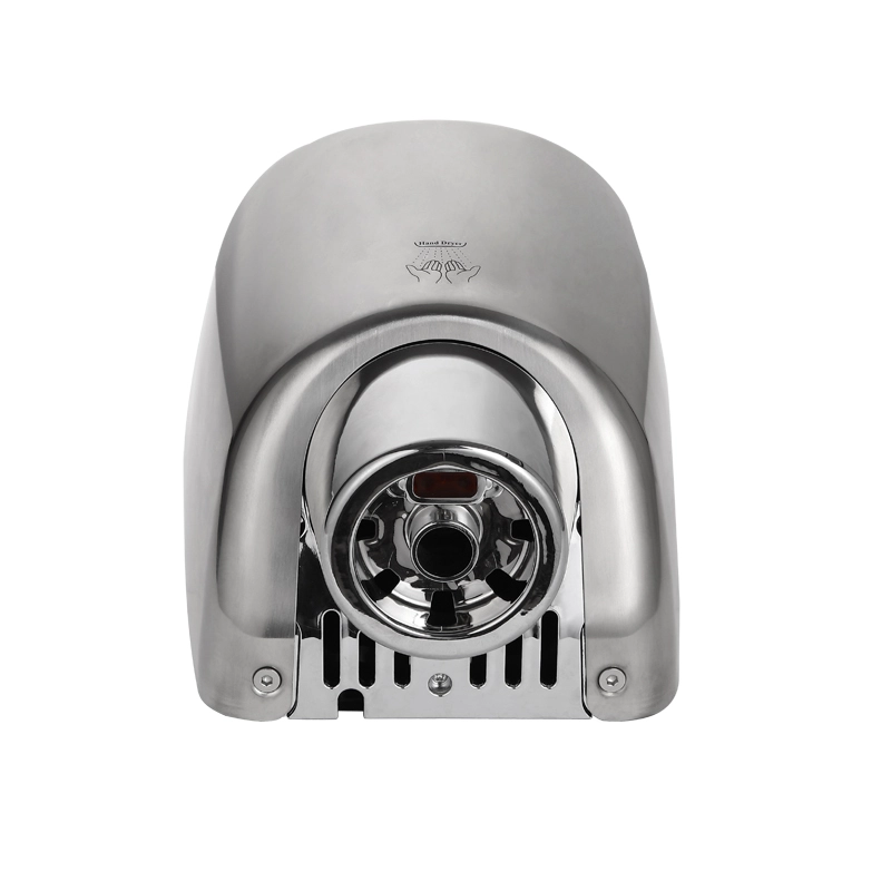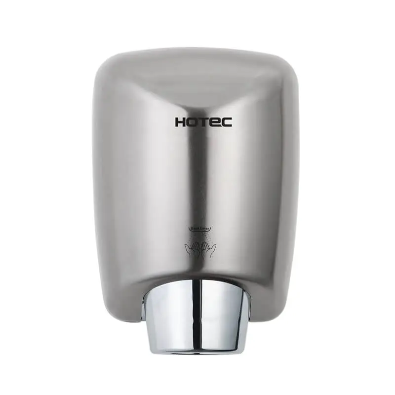 Automatic touch-free HOTEC hand dryer, one-piece cover body, durable, antirust and high efficiency. Made of 304 stainless steel with satin finish. Easy installation and maintenance. High speed brush motor incorporating a safety  thermal cut-off.