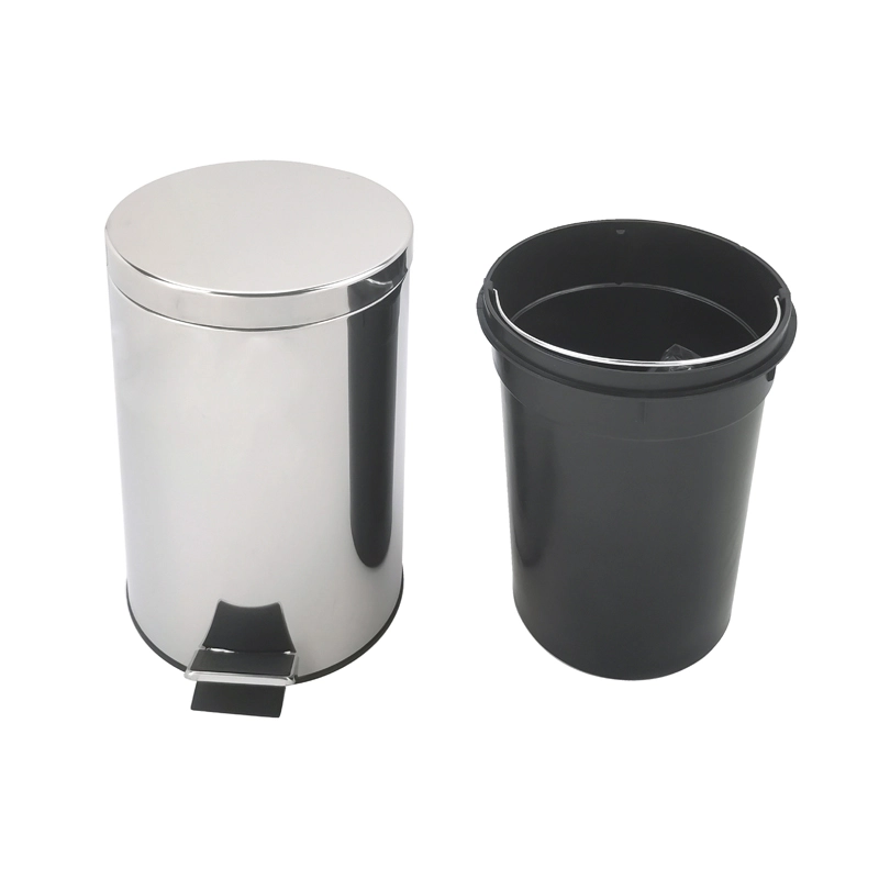HOTEC pedal-operated bin, circular body, 410 stainless steel with bright finish. Polypropylene interior bucket, easy to take out the trash. Pedal lids for preventing odour emittion to creat a more comfortable environment.