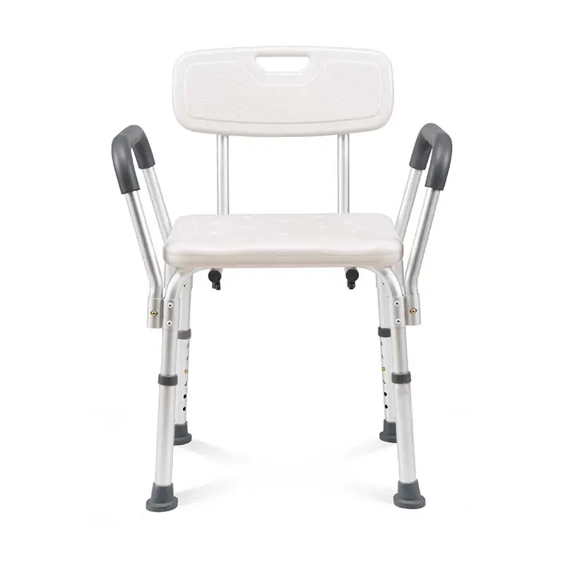 Shower Chair with Handle and Back Rest. HDPE body with aluminum legs., durability and safety, gives support and balance to those with limited mobility or who have trouble standing up.Suitable for use in bathrooms, WC and showers. Smooth, accessible surfaces for ease of cleaning.