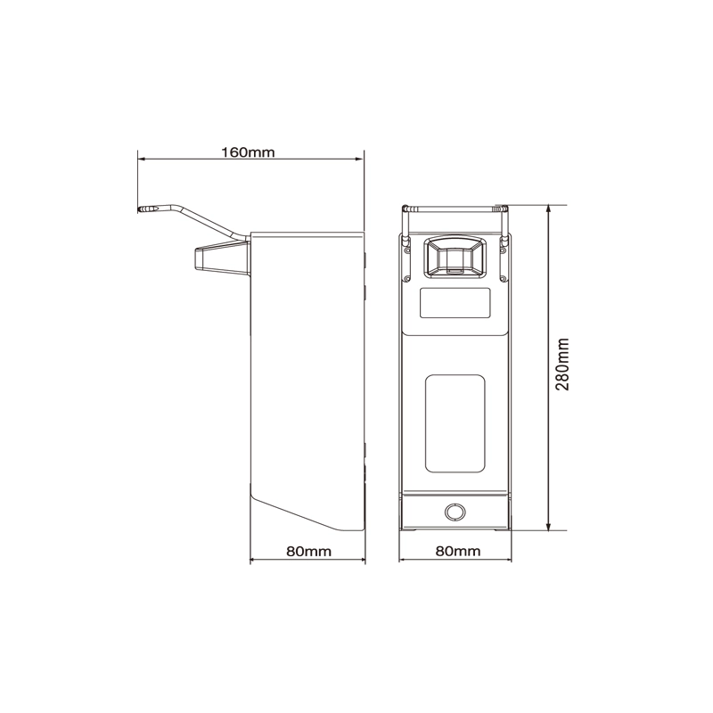 Vertical hand sterilizer dispenser with foam pump, wall mounted.